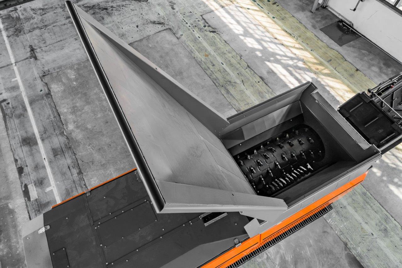 Turklāt tā materiālu padeves sistēma nodrošina, ka smalcināšanas process norit vienmērīgi. Tam ir 2 m³ izgāšanas tvertnes tilpums, kuru var palielināt līdz apm. 5 m³, izmantojot papildu stiprinājuma paneļus. Tvertni var ielādēt un noliekt pa partijām, vai arī to var iestatīt piemērotā leņķī, lai materiāls automātiski ieslīdētu sasmalcināšanas zonā.